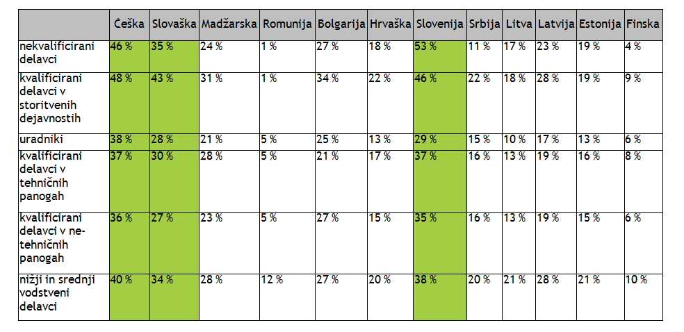 Spodnja tabela prikazuje delež zaposlenih, ki prejemajo mesečno nagrado za uspešnost po posameznih državah. Ta nagrada je najpogostejša na Češkem, Slovaškem in v Sloveniji.