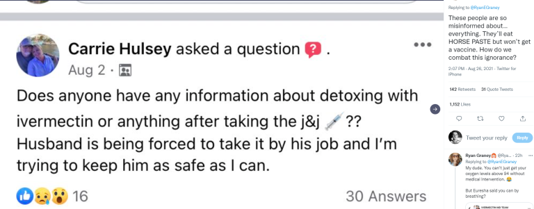 Ryan Graney prav tako poudarja, da ljudje raje jemljejo zdravilo, ki je namenjeno konjem in govedu, kot da bi prejeli odmerek cepiva proti koronavirusa.