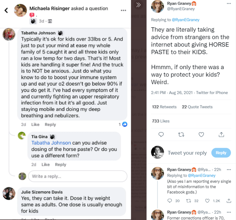 Zraven vseh napačnih in psevdoznanstvenih informacijah, z uporabo ivermektina ogrožajo tudi svoje otroke. Ena izmed uporabnic skupine je tako poudarila, da je zdravilo »po navadi v redu za otroke«.