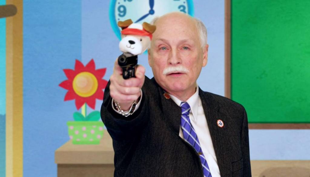 Cohen ga je prepričal, da sta skupaj posnela izobraževalni videoposnetek za triletne otroke, na katerem jih učita uporabljati orožje za obrambo pred napadalci. Orožje predstavita kot uporabno in koristno, za privlačnejšo podobo in učinkovitejši pristop pa uporabita celo plišaste igrače: