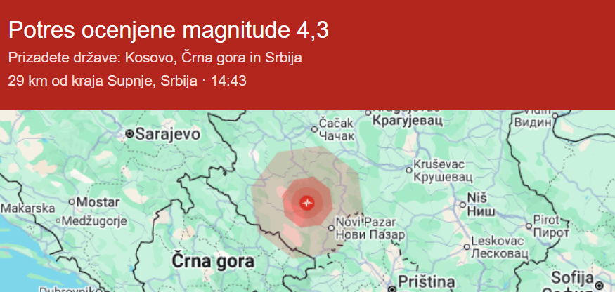 Žarišče potresa je bilo 29 kilometrov od kraja Supnje v Srbiji, tresenje pa so občutili tudi prebivalci Kosova in Črne gore.