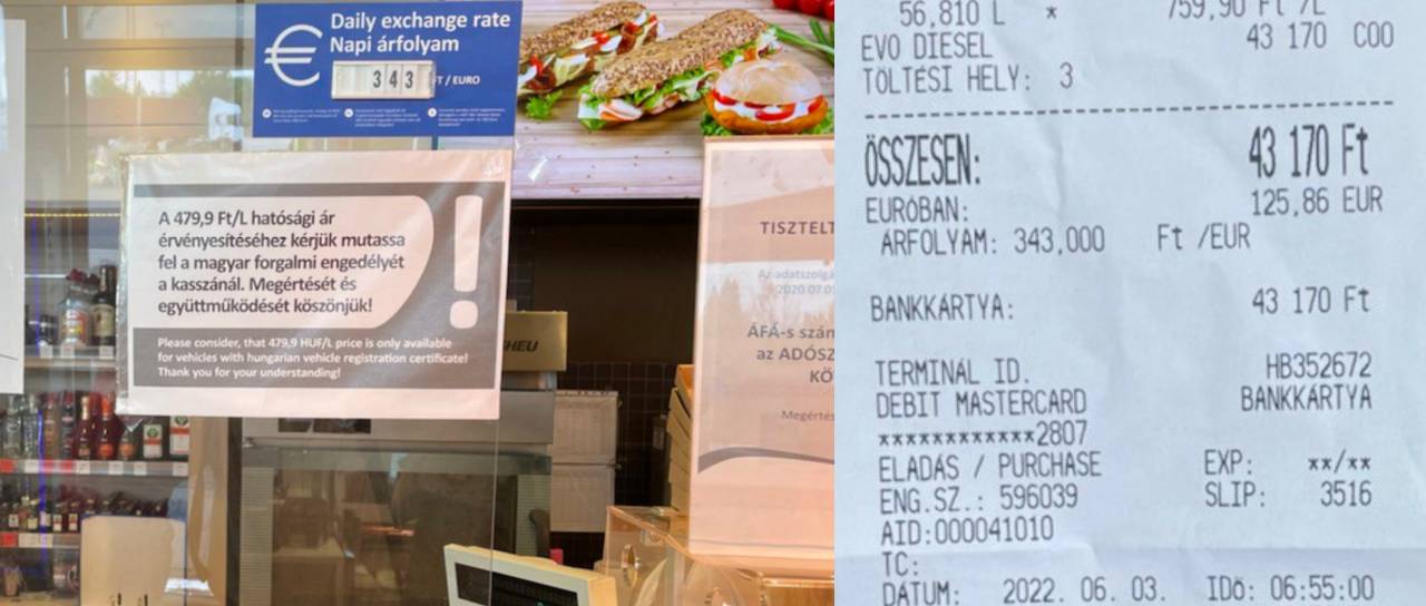»Prosimo, upoštevajte, da je cena 479,9 forintov za liter na voljo le vozilom z madžarskimi registrskimi oznakami. Hvala za razumevanje!«