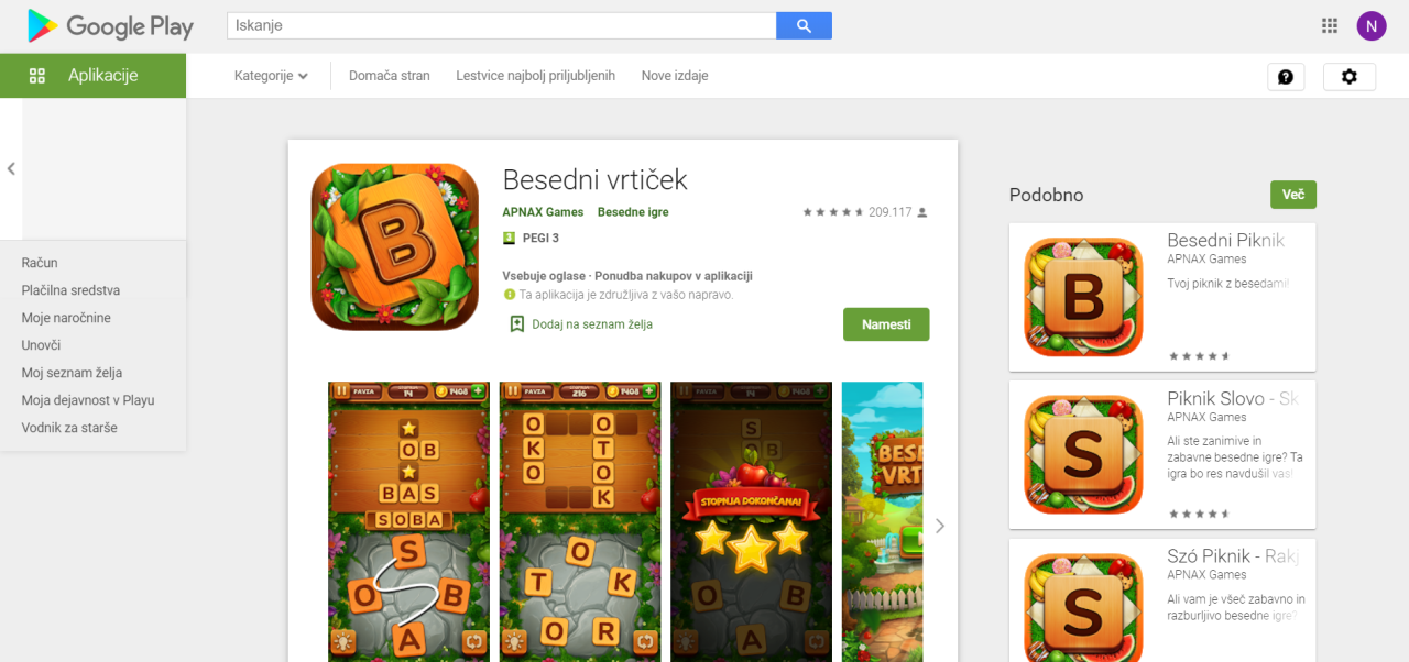 Besedni vrtiček - Android