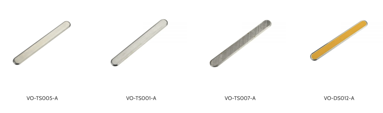 Možno je izbirati tudi med različnimi površinskimi vzorci, ki slepim in slabovidnim osebam omogočajo boljšo taktilno prepoznavnost. S tem se izboljša občutek in zaznavanje podplata ob stopanju, kar prispeva k večji varnosti in zanesljivosti pri orientaciji.