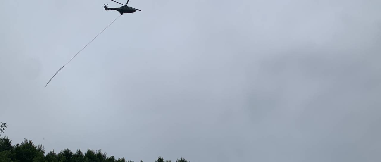 Helikopter hrvaškega vojnega letalstva je skupaj z osmimi pripadniki hrvaške vojske v Slovenijo prispel v nedeljo dopoldne ter pomaga pri zajezitvi in utrditvi nasipov na Muri.