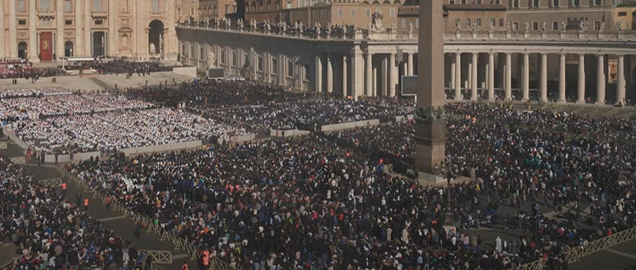 Na Trgu svetega Petra so se zbrali verniki, veljajo pa strogi varnostni ukrepi, vključno z varnostnimi pregledi pred vstopom na trg.