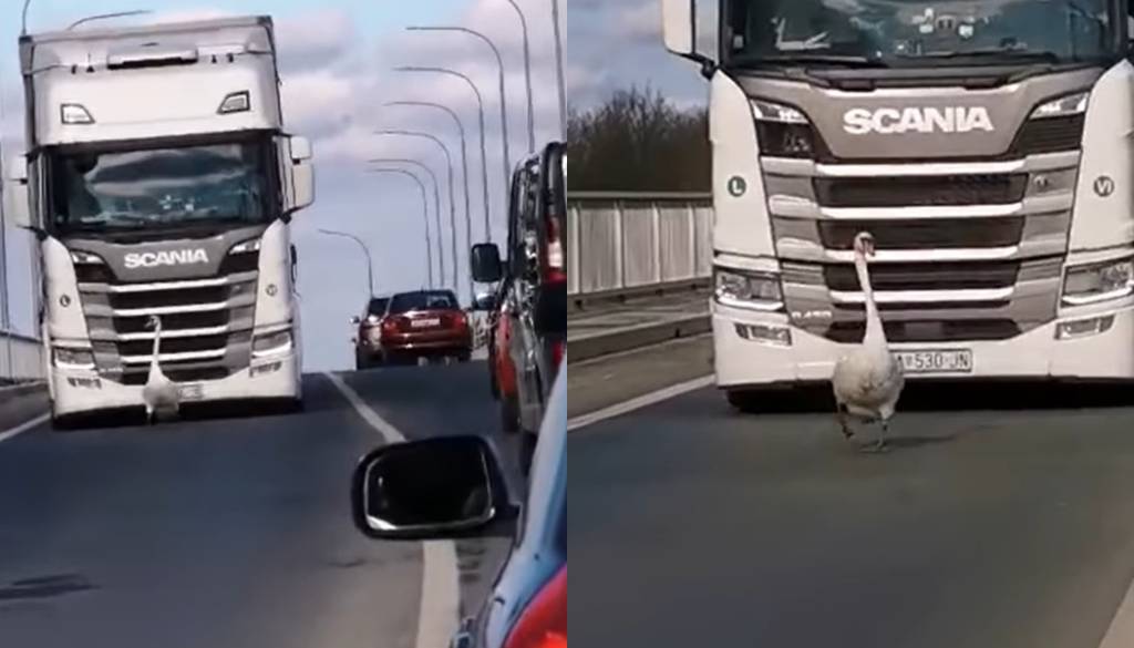 Voznike na Dravskem mostu v Varaždinu je presenetil labod, ki se je odločil počasi in elegantno sprehoditi po mostu. Čeprav je zaustavil promet, so vozniki potrpežljivo čakali, da je labod zapustil cesto.