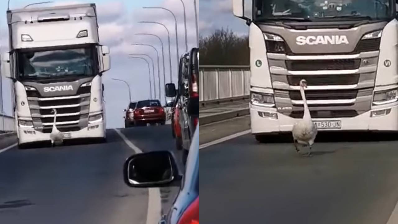 Hrvaško je v teh dneh nasmejal prikupen video laboda, ki se ležerno sprehaja po mostu. Za njim pa nastaja dolga kolona vozil.