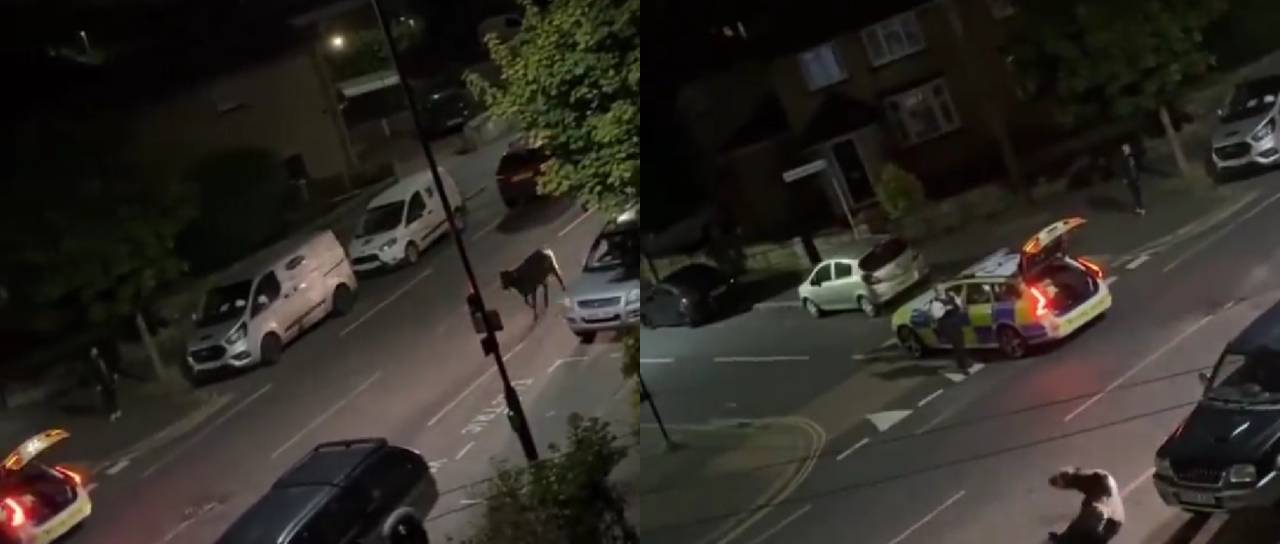 Incident se je zgodil v petek zvečer, ko so prebivalci na pomoč poklicali policijo, ko so videli sredi ulic manjšega mesta Staines-upon-Thames pobeglo kravo.
