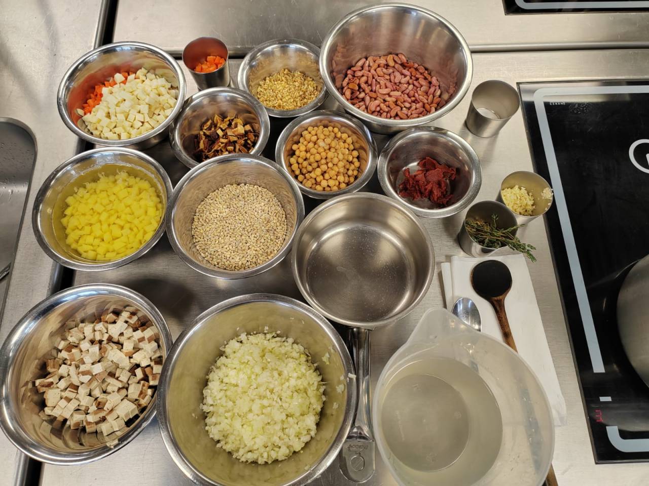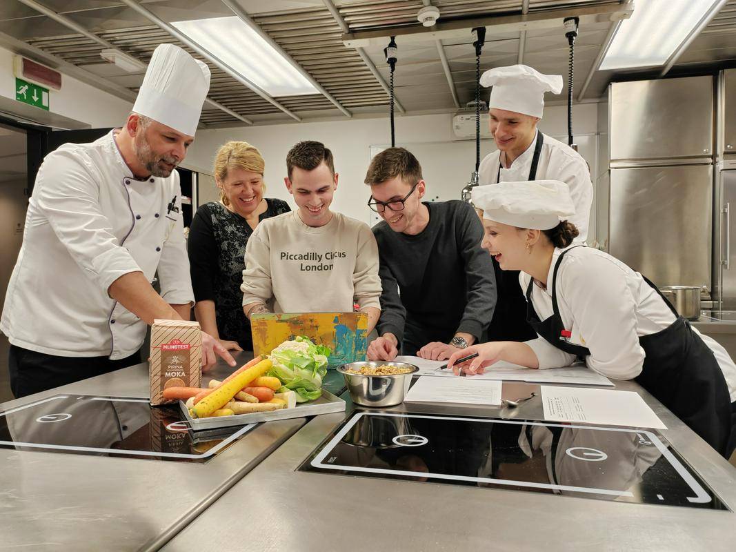 Študentje BIC Ljubljana so v prvem krogu tekmovanja pripravili recepture in izračune hranilnih vrednosti za dve jedi, pirine bučne štruklje s puranom in ricotto ter ješprenj s suhimi hruškami orehi in dimljenim tofujem.