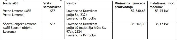 Na Vrtcu Lovrenc bo instalirana moč modulov znašala 53,75 kilovatov, na Športnem objektu Lovrenc pa 36,12 kilovatov.