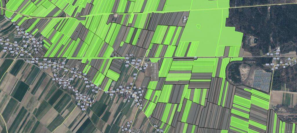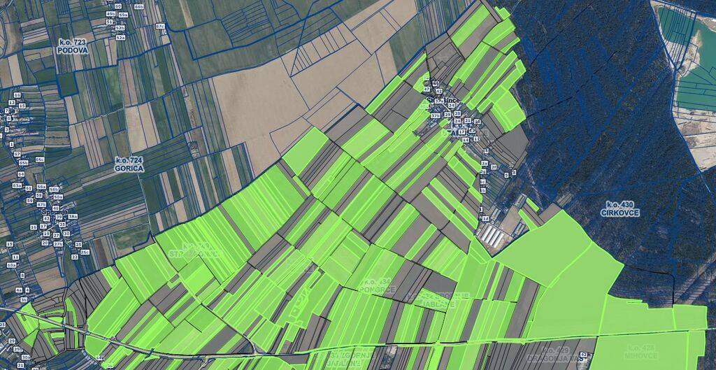 Na spodnjih fotografijah je prostorski prikaz državnega namakalnega sistema z označenimi zemljišči, kjer so lastniki podali svoja soglasja za priključitev (zeleno).