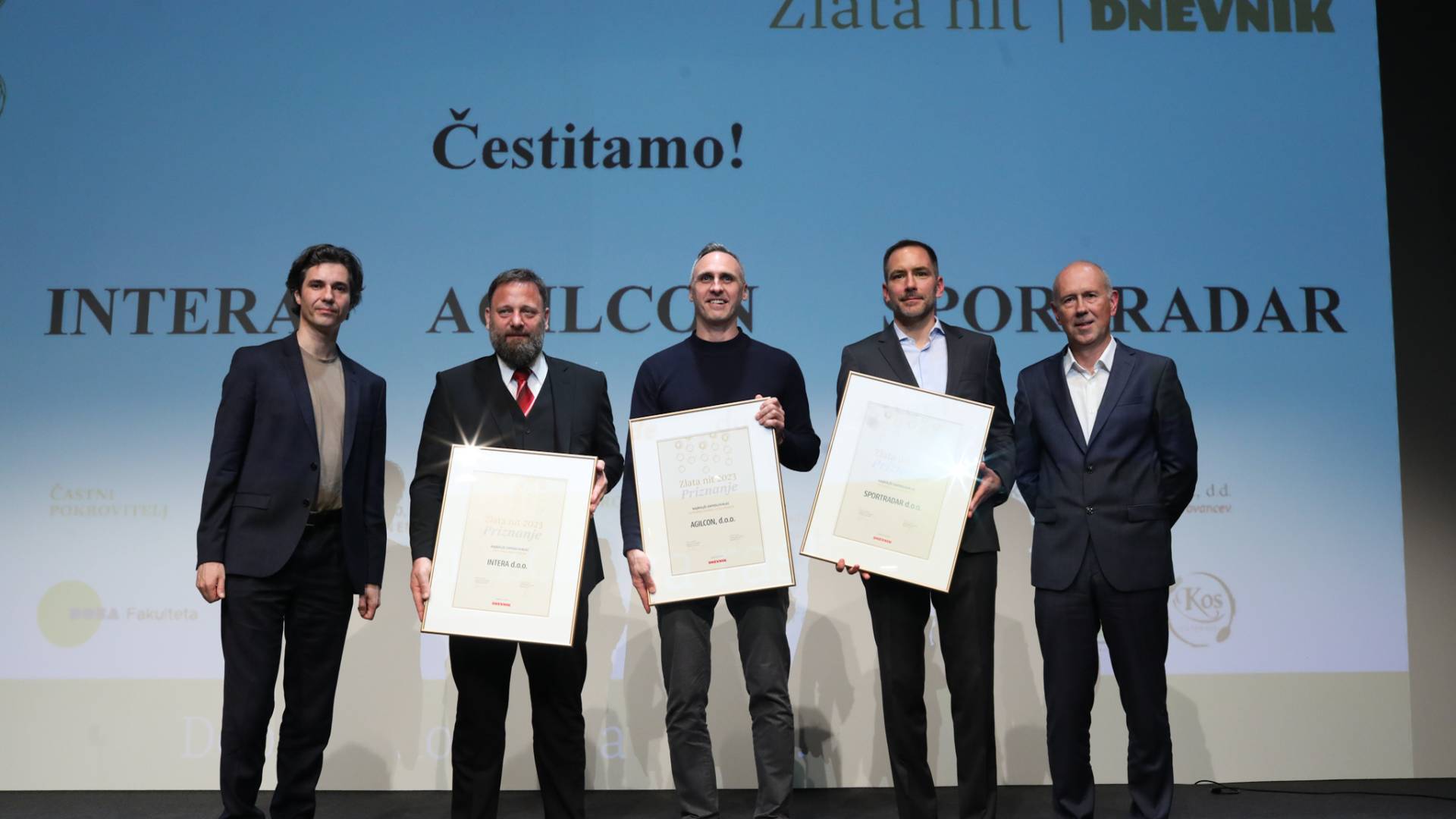 Na slovesni razglasitvi, ki je bila v četrtek, je za leto 2023 v kategoriji velikih podjetij slavil Sportradar, v kategoriji srednje velikih Agilcon, v kategoriji malih podjetij pa ptujska Intera.