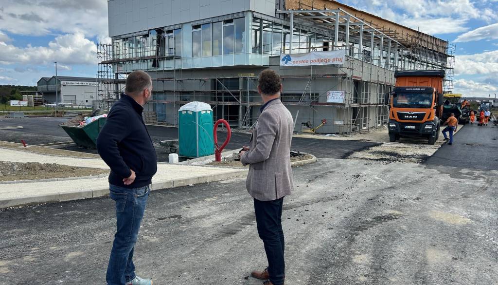 Potek del na Tehnološkem parku v Ormožu se bliža zaključni fazi. Trenutno potekajo dela na fasadi in urejanju okolice, v pritličju pa zaključujejo z montažnimi deli.