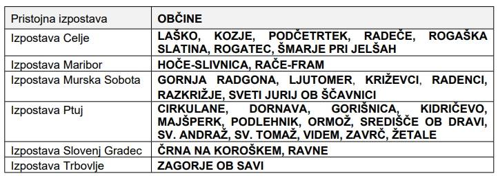 Za izpostavo Ptuj izdan sklep velja za občine Cirkulane, Dornava, Gorišnica, Kidričevo, Majšperk, Podlehnik, Ormož, Središče ob Dravi, Sveti Andraž, Sveti Tomaž, Videm, Zavrč in Žetale.
