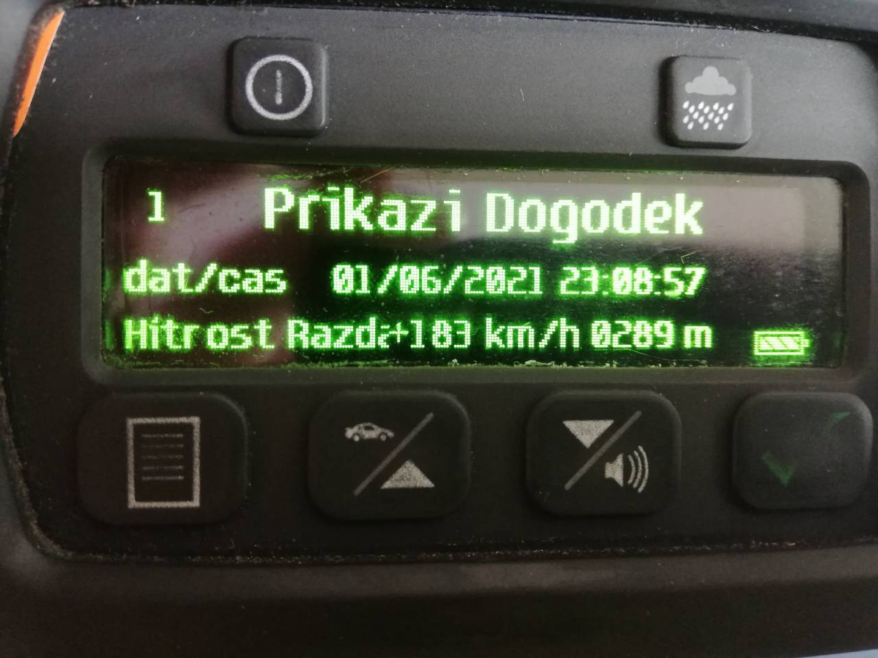 Okrog 23. ure sta hitrost izmerila 19-letnemu vozniku začetniku, ki je z osebnim avtomobilom peljal kar 183 kilometrov na uro.