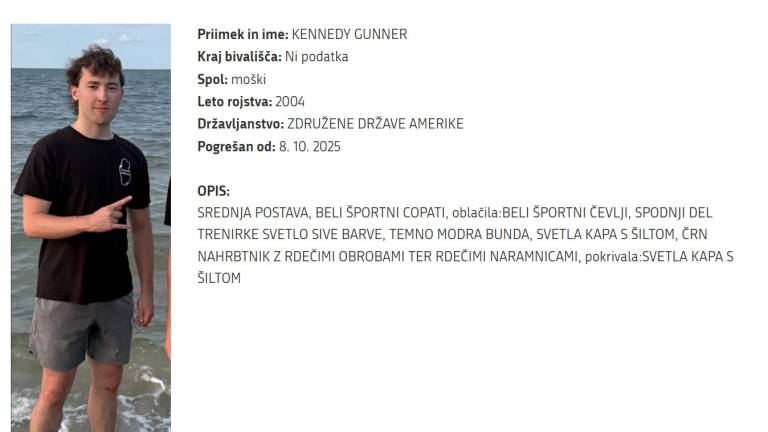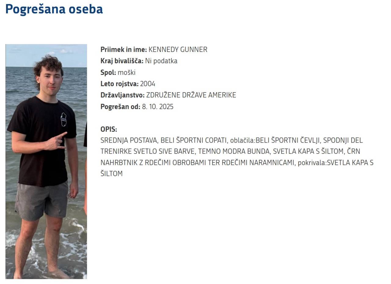 Policija in gorski reševalci v Sloveniji iščejo 20-letnega ameriškega pohodnika Gunnarja Kennedyja, ki je konec prejšnjega tedna izginil v Triglavskem narodnem parku. Kennedy je študent tretjega letnika Univerze v Virginiji in se trenutno nahaja na študijski izmenjavi v Madridu.