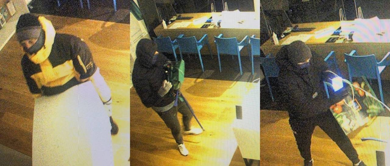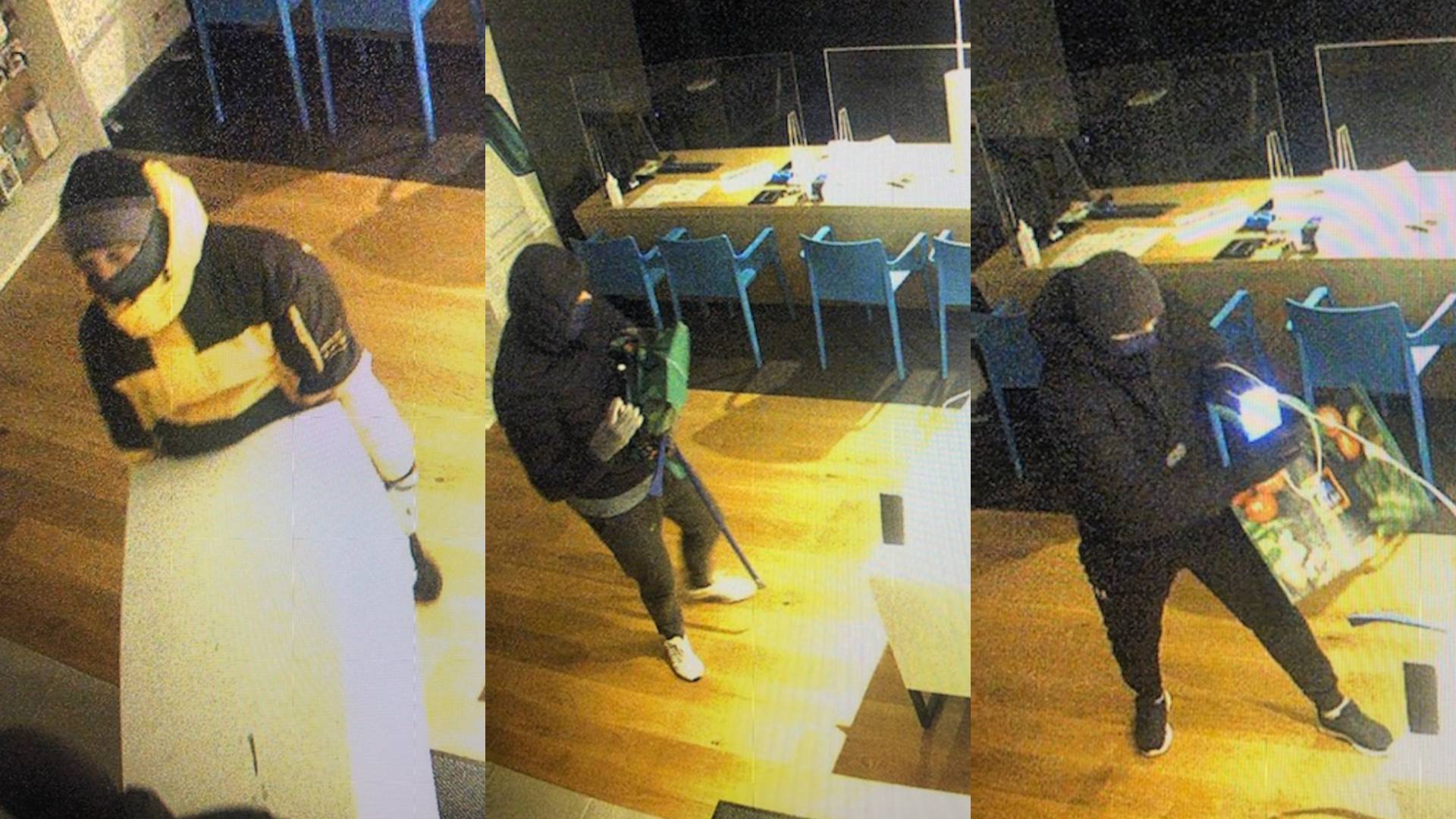 • Tretja oseba je nosila črno bundo s kapuco in sive rokavice, oblečeno je imela siv pulover in spodnji del trenerke sive barve, preko ust in nosu je imela modro prevleko, obuta je bila v bele športne copate.