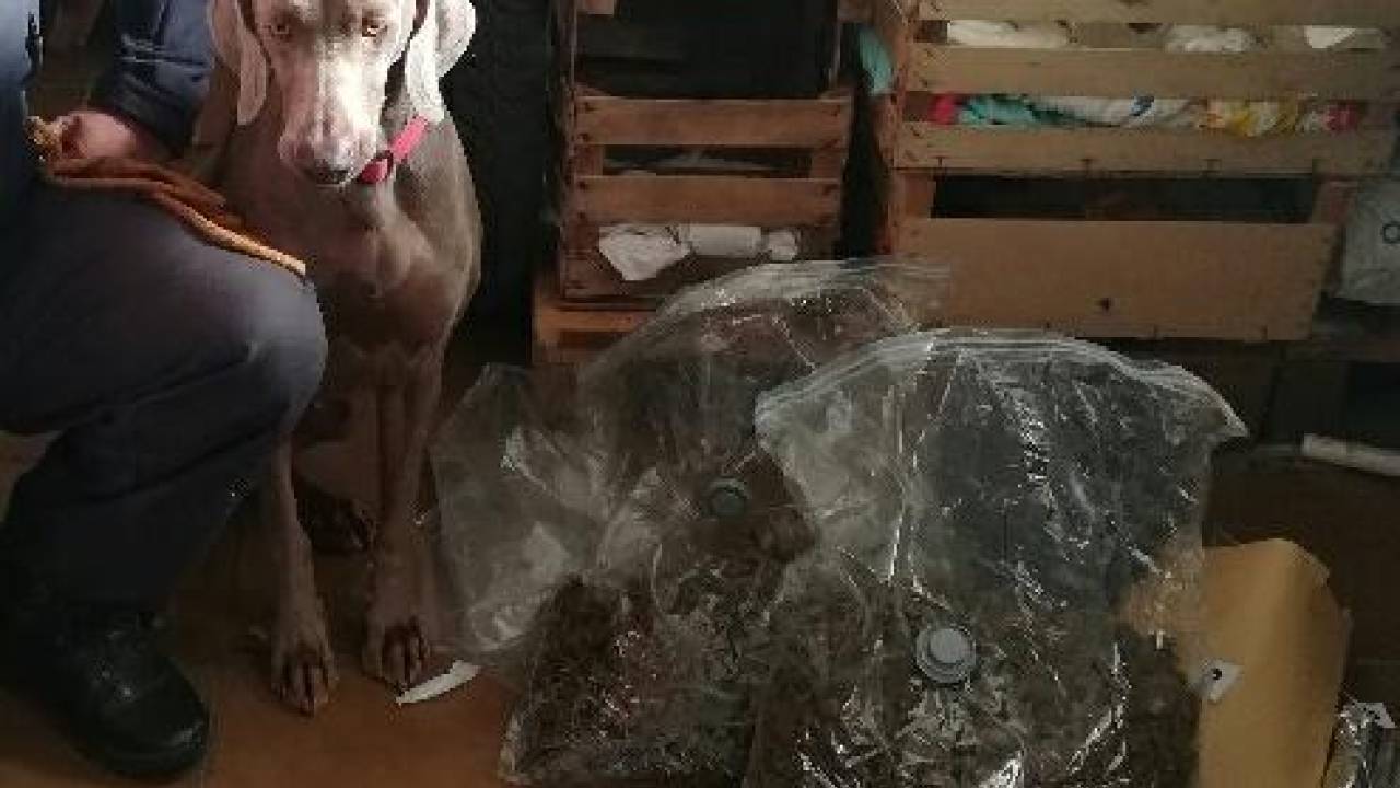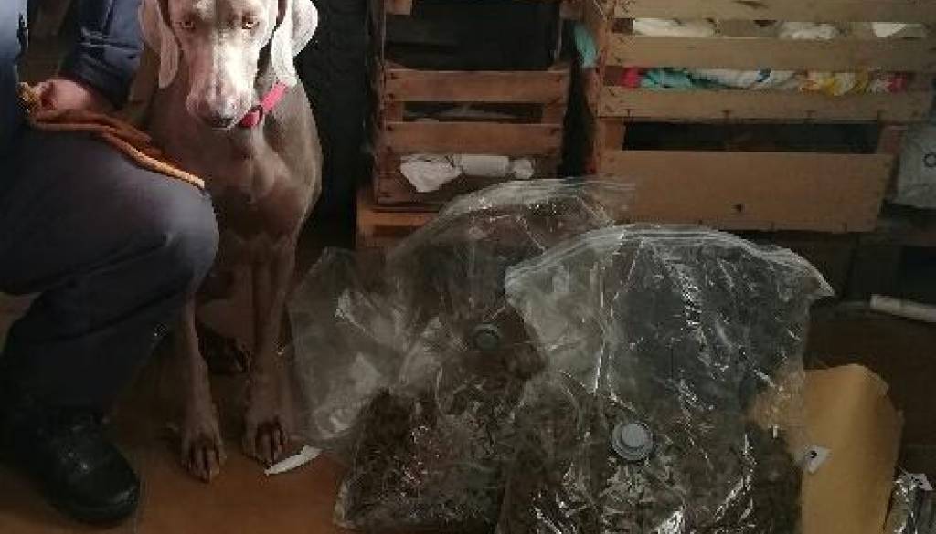 Naslednji dan so, na podlagi pisne odredbe ptujskega Okrožnega sodišča, pri njemu doma opravili hišno preiskavo, pri kateri so uporabili tudi službenega psa, izurjenega za odkrivanje prepovedanih drog. Med hišno preiskavo so našli 3200 gramov marihuane, ki so jo zasegli.