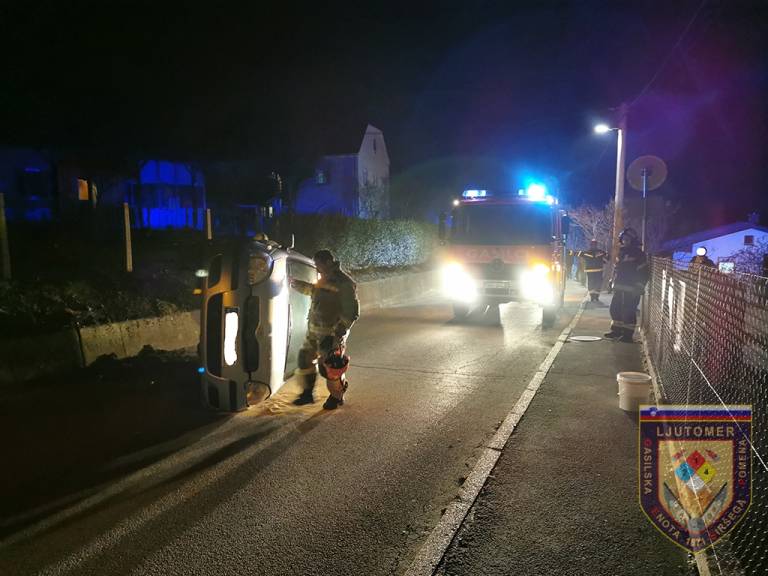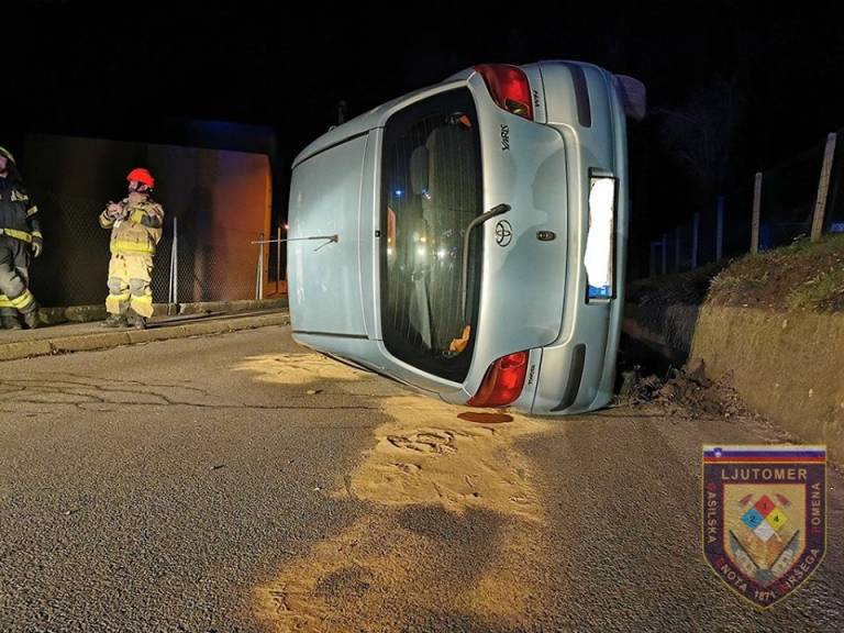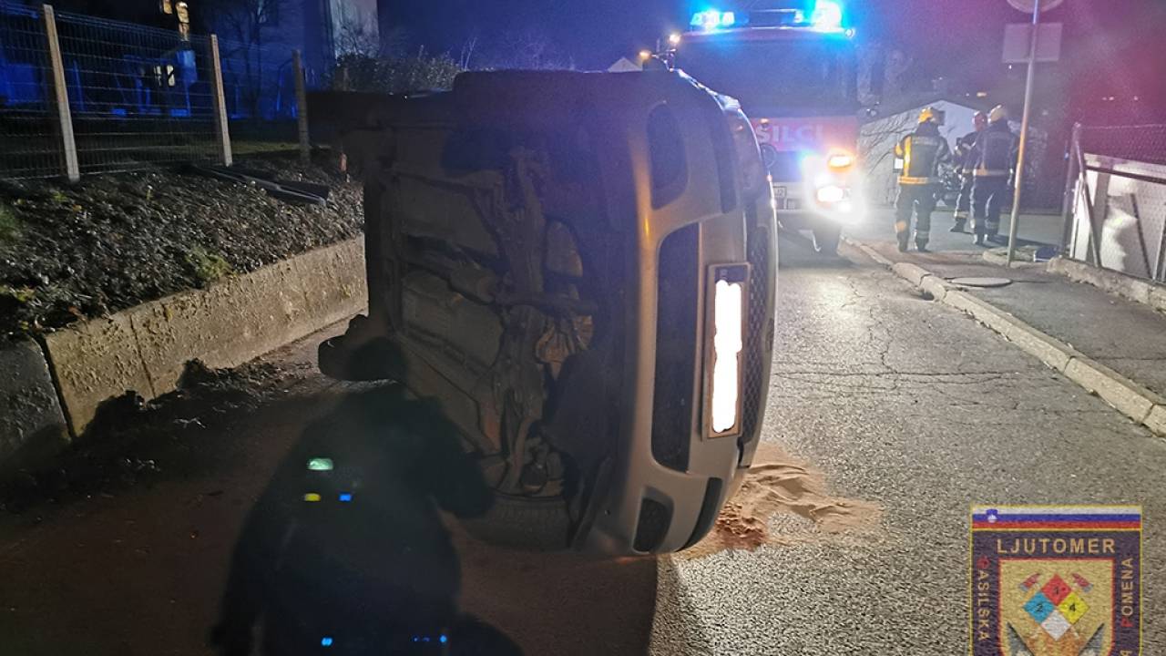 Po podatkih Uprave Republike Slovenije za zaščito in reševanje se je danes ob 18.23 na Mestnem bregu v Ljutomeru osebno vozilo prevrnilo na bok.