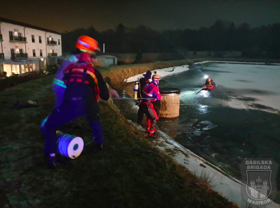 Gasilci Gasilske brigade Maribor so včeraj, ob 18.17, na Pohorski ulici v Mariboru iz zaledenelega ribnika rešili dve osebi.
