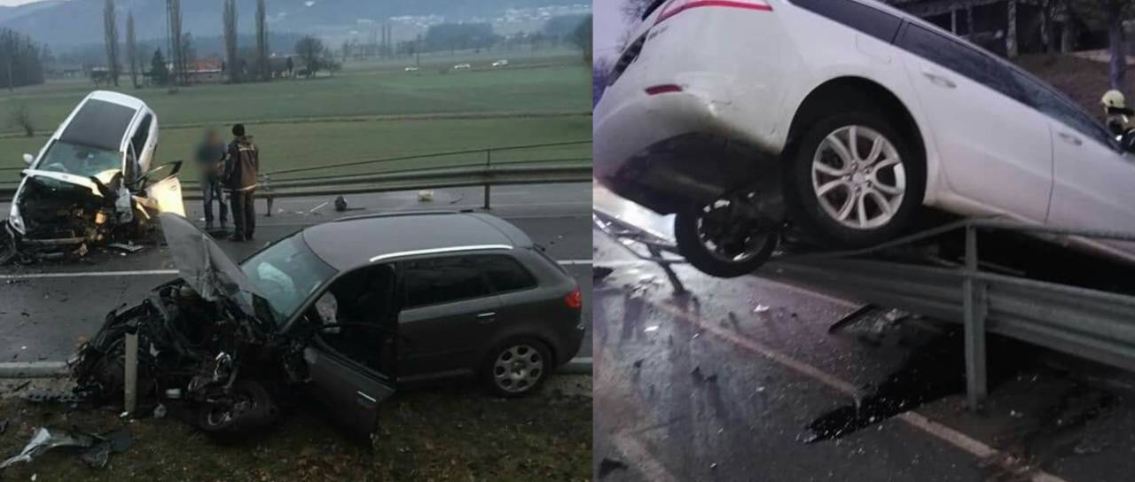 V prometni nesreči pri Dobrnežu sta udeleženi dve vozili, ki sta po vsej verjetnosti čelno trčili. Trčenje je bilo sodeč po fotografijah silovito, saj je eno vozilo odbilo celo na ograjo. Cesta Slovenske Konjice - Tepanje je še vedno zaprta.