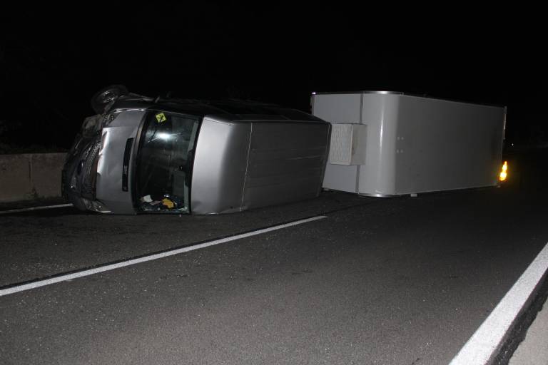 Priklopni del vozila je z desnega voznega pasu najprej zaneslo v desno, kjer je oplazilo betonsko zaščitno ograjo, nato pa še skrajno v levo, kjer je prav tako oplazilo betonsko zaščitno ograjo, nakar se je vozilo s priklopnikom prevrnilo.