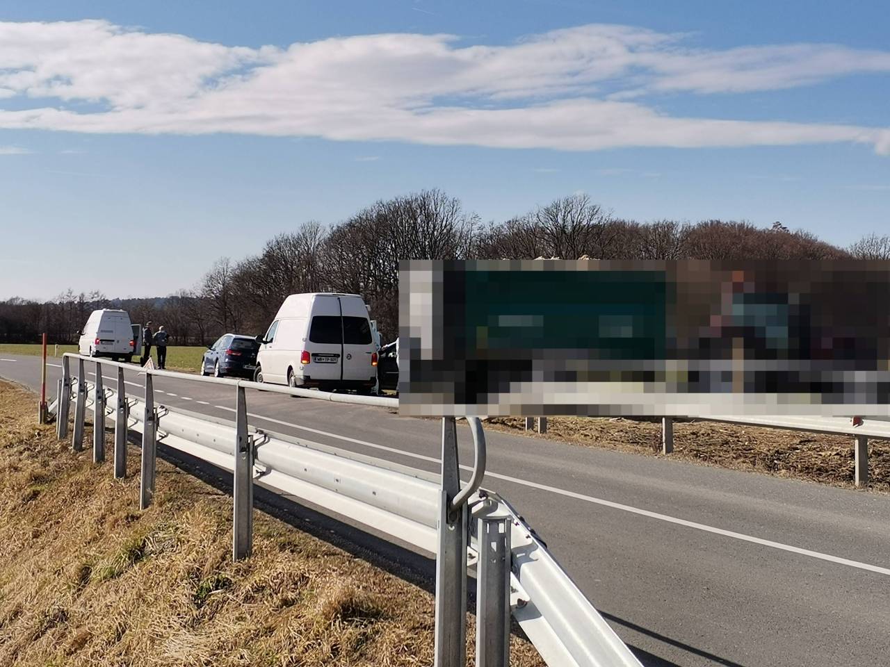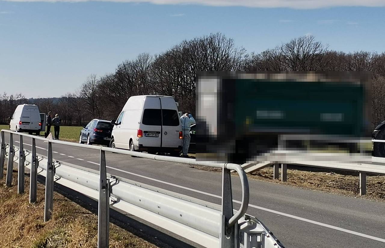 Na fotografijah s prizorišča kraja zločina smo zameglili vozilo, ki ni vpleteno v postopek, a ga po navodilih policije lastnik ne sme umakniti.