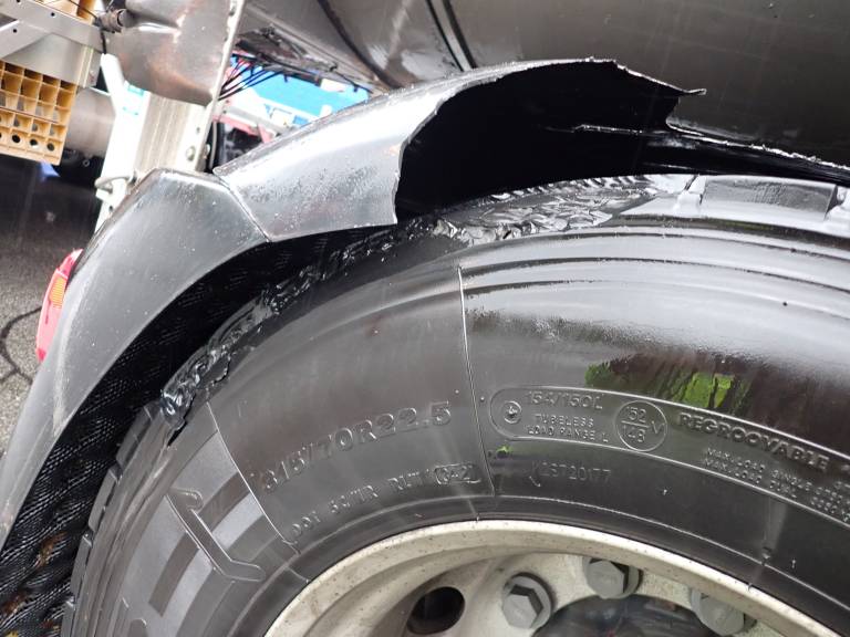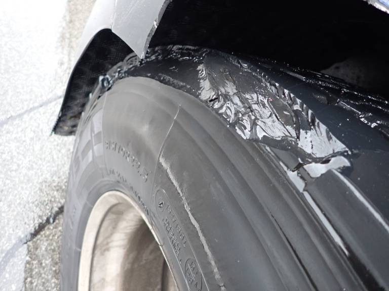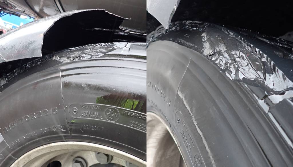 Madžar je po avtocesti vozil nevaren tovor s popolnoma uničeno pnevmatiko.
