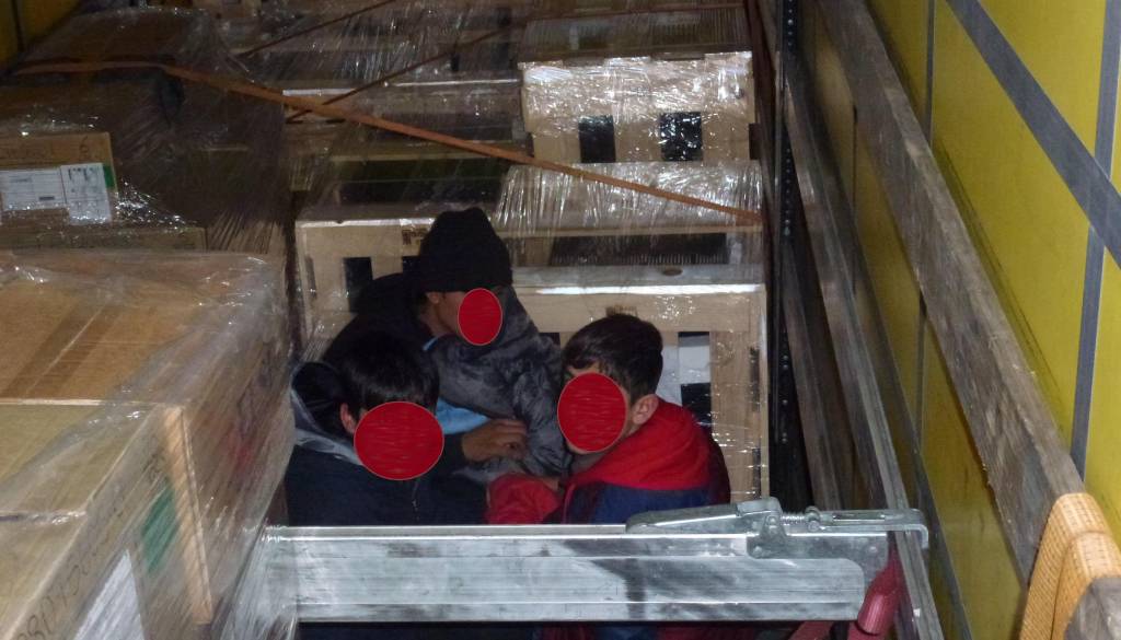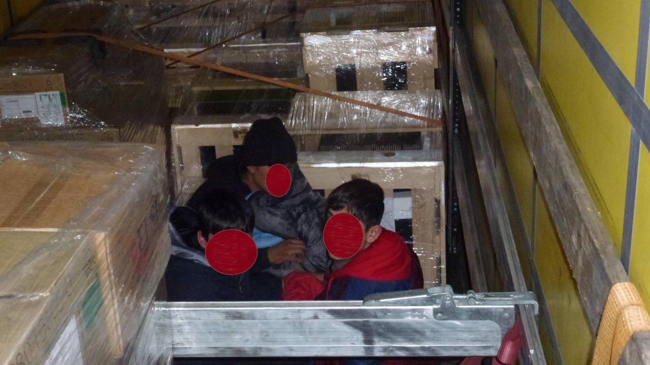 V torek popoldan so na mejnem prehodu Gruškovje v tovornjaku, ki ga je vozil 39-letnik Bolgar, policisti ugotovili, daj e ponjava na zgornjem delu priklopnega tovornega vozila prerezana iz notranje strani in zašita s plastičnimi zategami. Zato so odprli in pregledali tovorni del priklopnega vozila ter v njem odkrili dva 13-letna državljana Afganistana in 29-letnega državljana Pakistana, so sporočili s Policijske uprave Maribor.