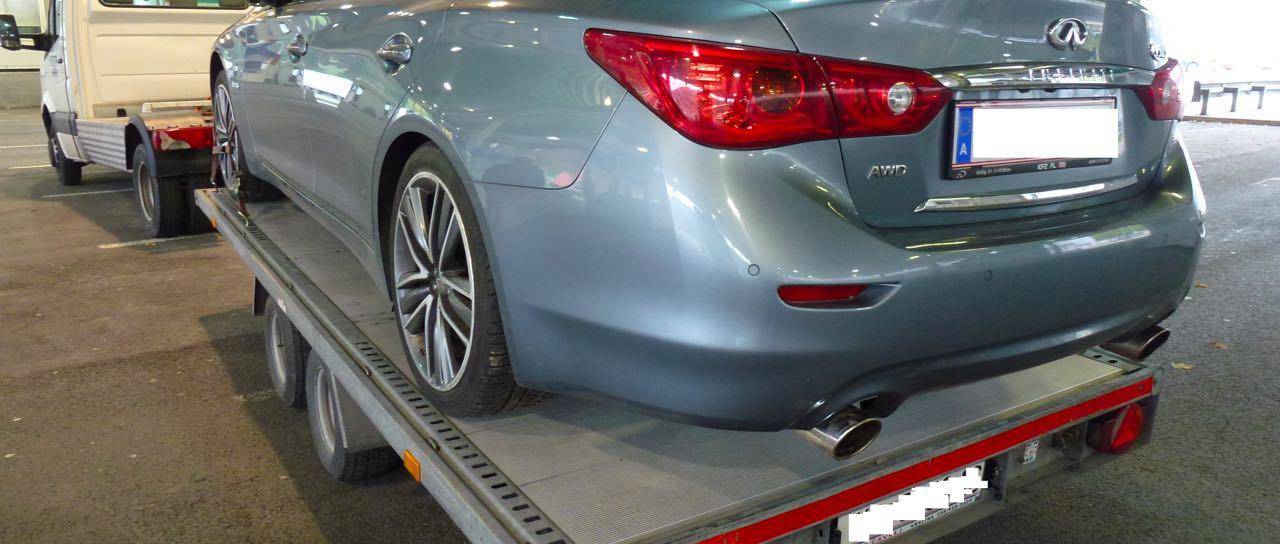Na Mednarodnem mejnem prehodu Gruškovje je danes ob 4.45 v Slovenijo vstopal 34-letni Hrvat, ki je vozil vlečno vozilo s pripetim priklopnim vozilom za prevoz vozil. Obe vozili sta imeli hrvaške registrske oznake. Na priklopnem vozilu je imel naloženo osebno vozilo znamke Infiniti, tip V37, ki je imelo avstrijske registrske oznake.
