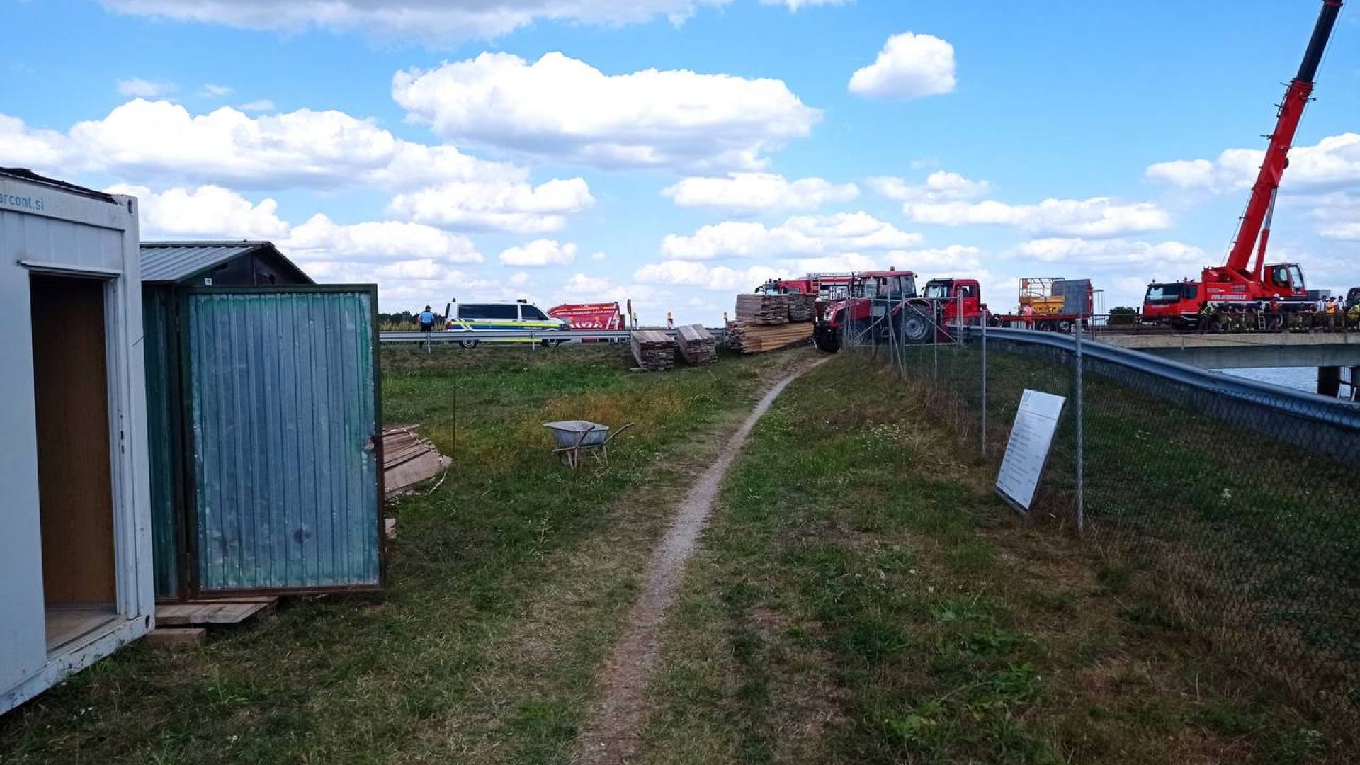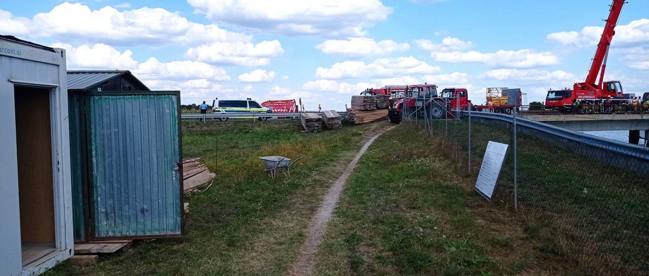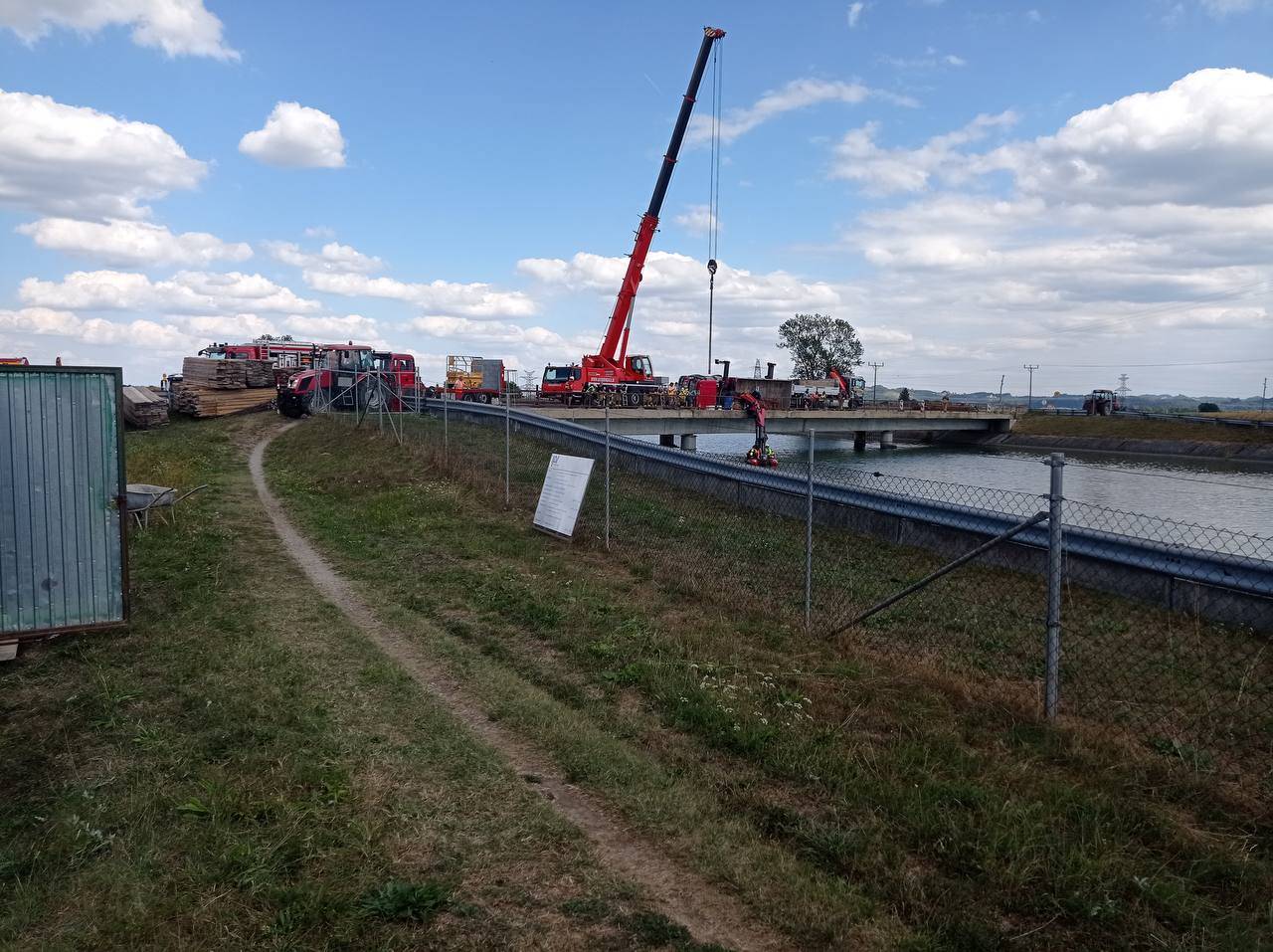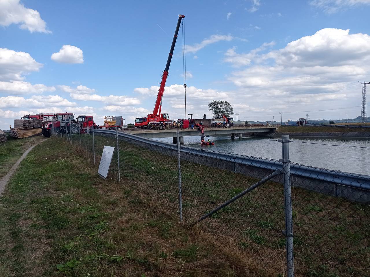 Gasilci Prostovoljnega gasilskega društva Ptuj, Stojnci in potapljači Javnega zavoda gasilske brigade Maribor so odklopili tovor, ki je padel v kanal, ga pričvrstili na dnu kanala, saj se bo akcija dviga tovora nadaljevala v petek.