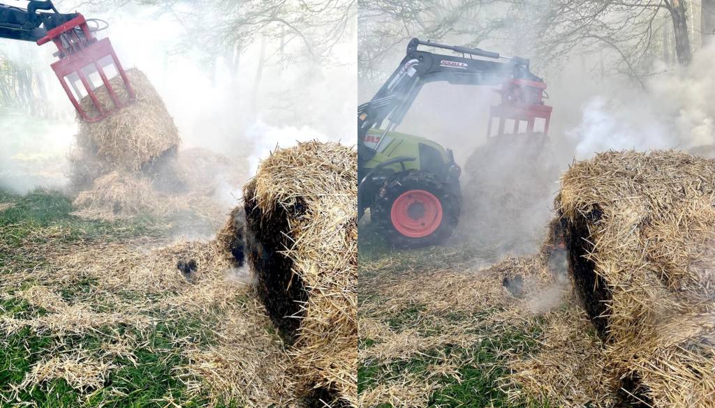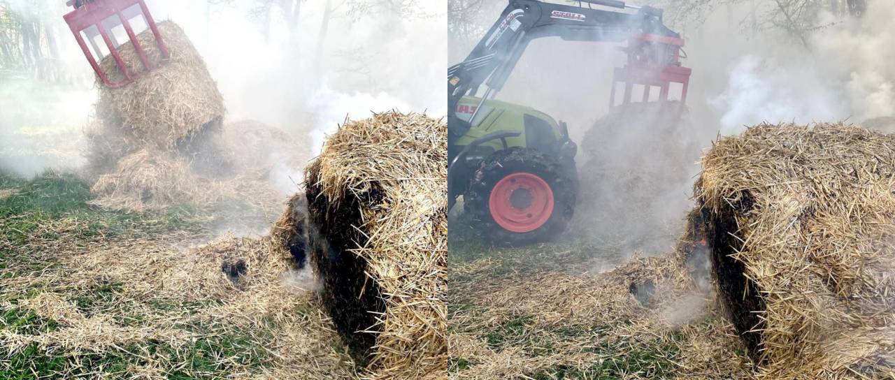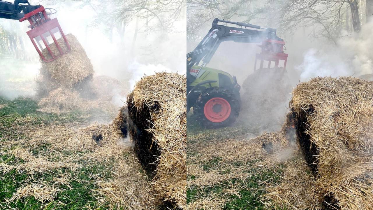 Ptujski gasilci so pogasili devet gorečih bal, omejili požar in s traktorjem preventivno prekopali požarišče.