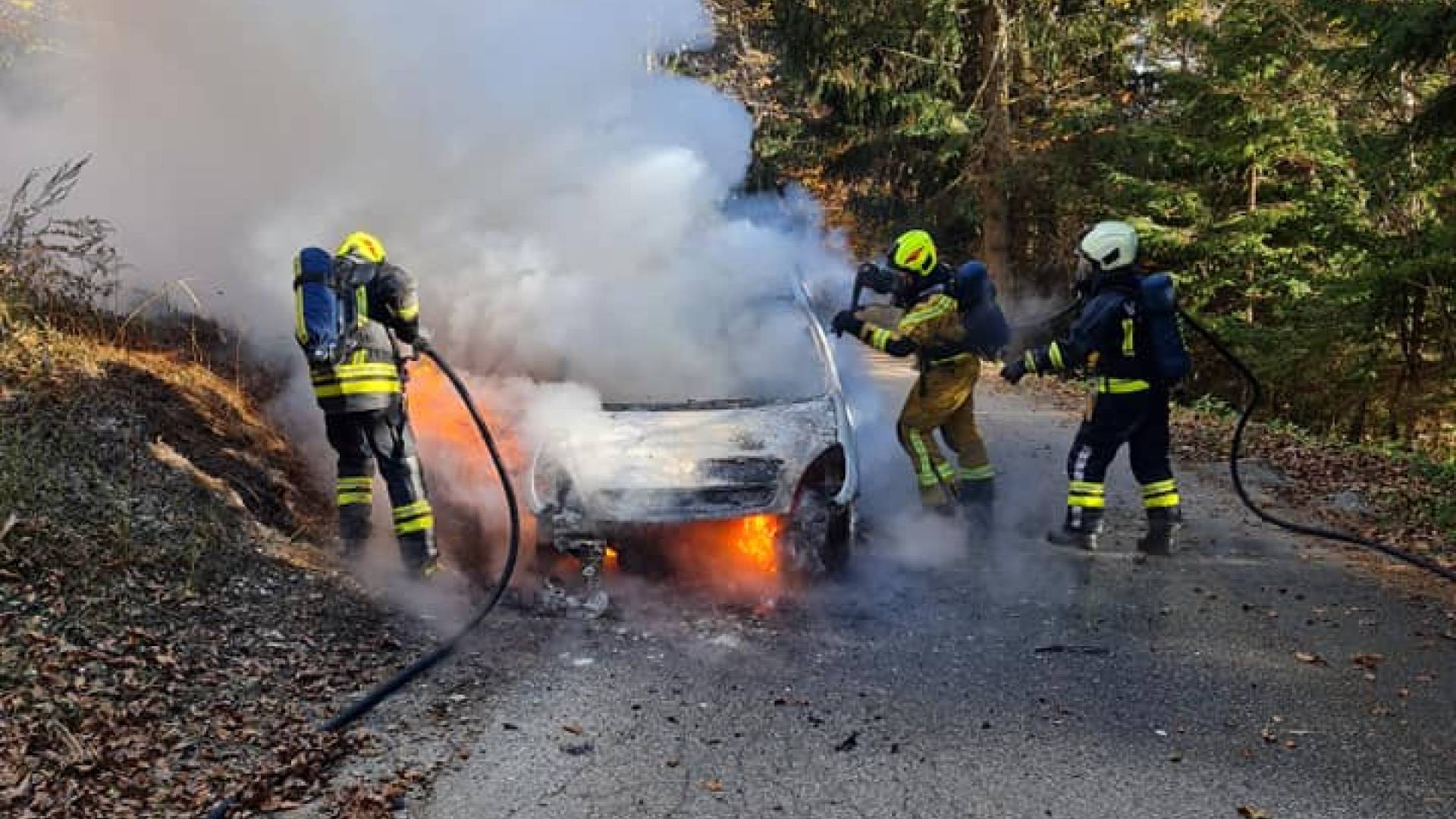 »Danes ob 13:19 smo bili iz strani Regijskega centra za obveščanje Maribor obveščeni o požaru osebnega vozila na lokalni cesti Spodnje Hoče - Belvi, v bližini lovske koče na Hočkem Pohorju,« so na Facebooku zapisali hoški gasilci.