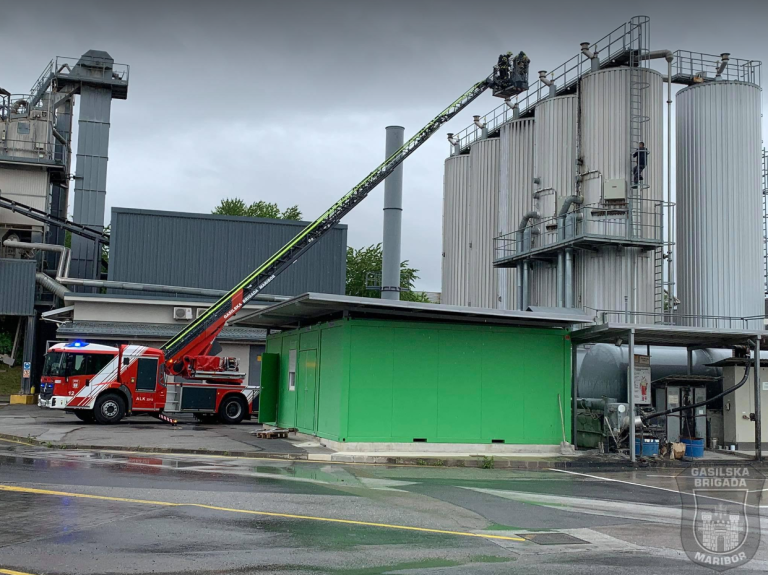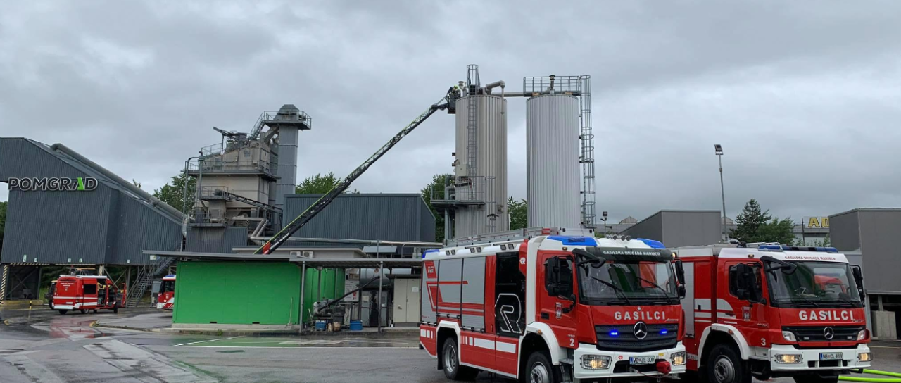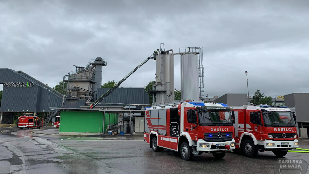 Gasilci so ob 8.41 prejeli prijavo, da je na Flisovi ulici v naselju Spodnje Hoče, občina Hoče-Slivnica, zagorelo v silosu za bitumen.