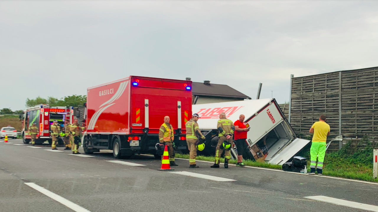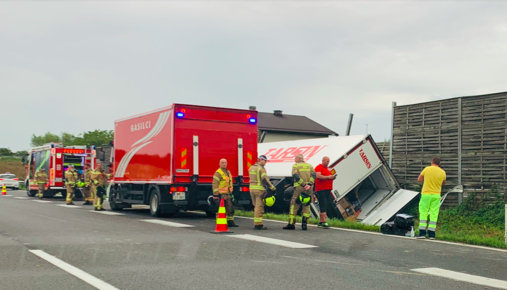 Na avtocesti se je v prometni nesreči prevrnil tovornjak, na kraju nesreče so gasilci, sporočajo bralci.