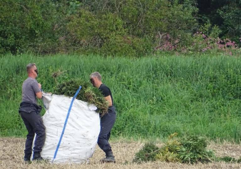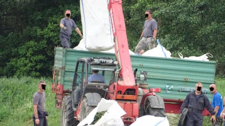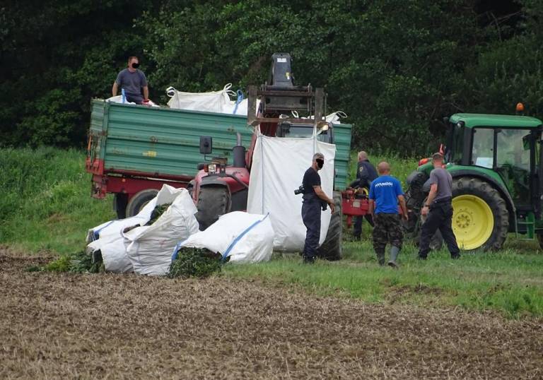 Konopljo so spravljali v 'jumbo' vreče, odpeljali naj bi jih okoli dvajset. Obsežna policijska akcija je potekala ob naselju Benica, v bližini reke Mure.