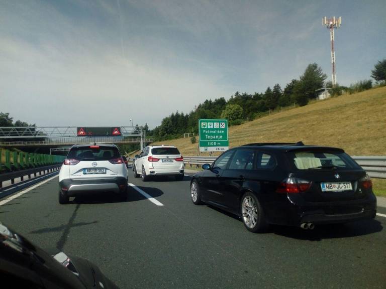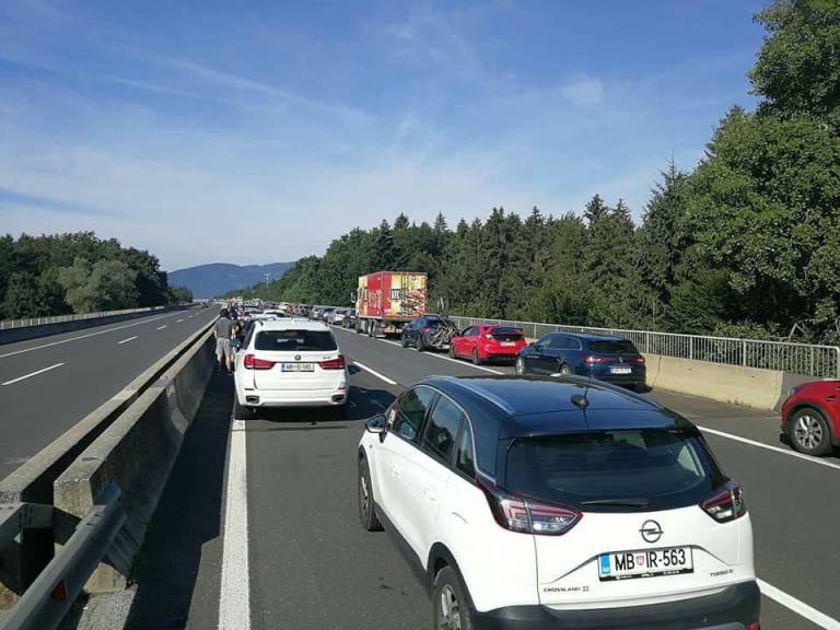 Zaradi odstranjevanja posledic prometne nesreče je bil zaprt prehitevalni pas pred počivališčem Tepanje proti Ljubljani.