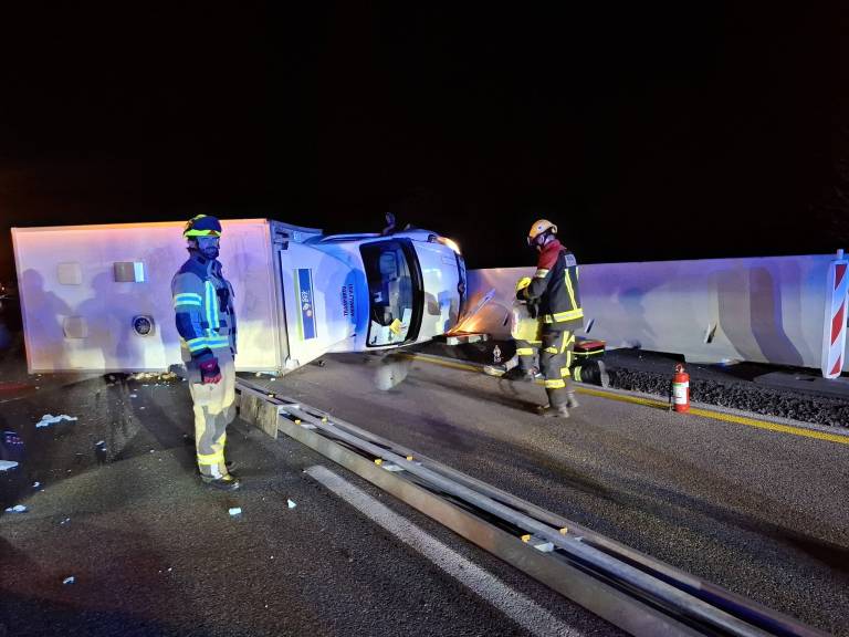 V soboto, ob 22.34, se je na avtocesti Celje-Maribor v smeri Maribora prevrnilo tovorno vozilo.