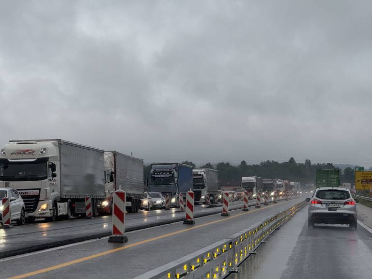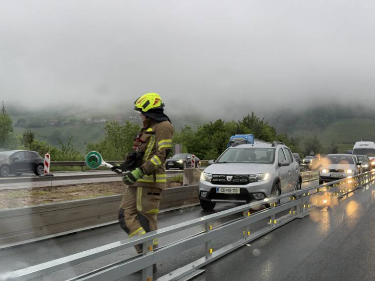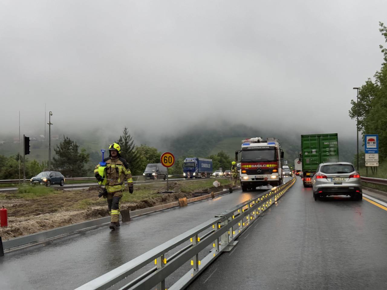 »Promet poteka le po desnem pasu, zato se vozniki, namenjeni proti Ljubljani, držite desnega pasu,« dodajajo. Promet poteka sedaj le po enem pasu v obe smeri.
