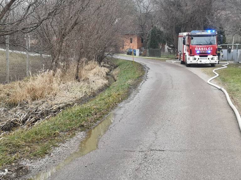 V okolici objekta, v katerem je zagorelo, je opaziti tekočino nenavadnega vonja. Za katero snov gre, še ni znano.