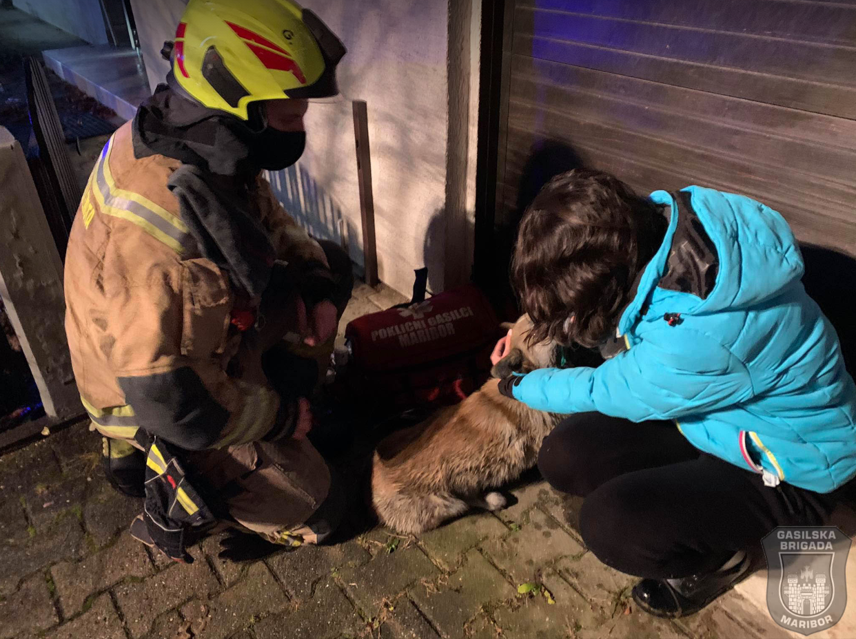 Mariborski gasilci so vleraj, 6. decembra 2020, med preiskovanjem gorečih prostorov našli negibnega psa, zaradi česar so ga nemudoma odnesli iz močno zadimljenega prostora.