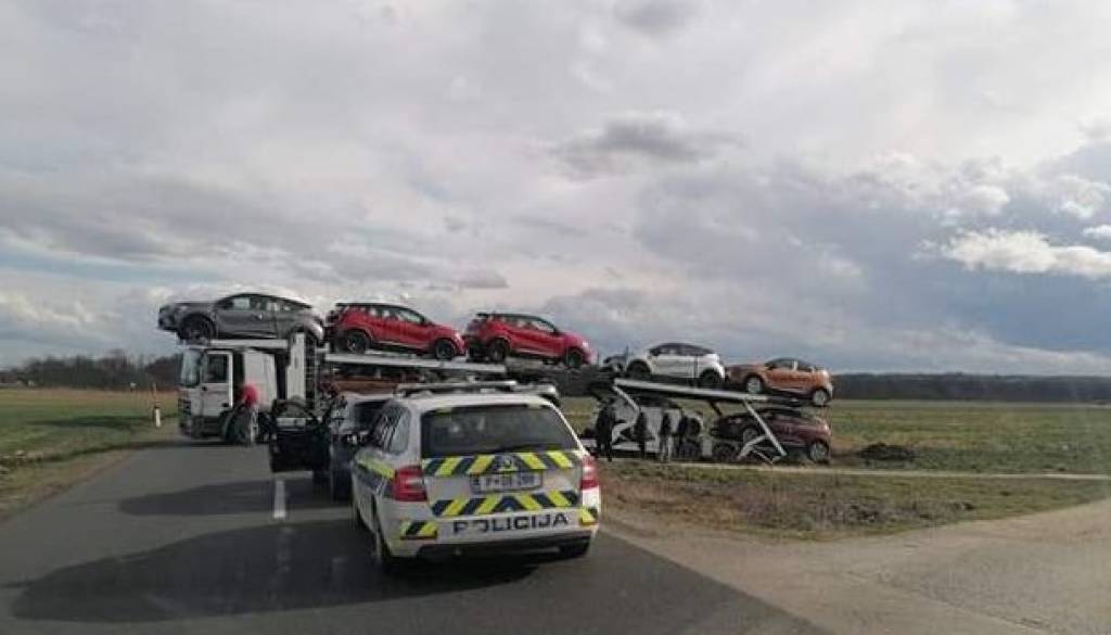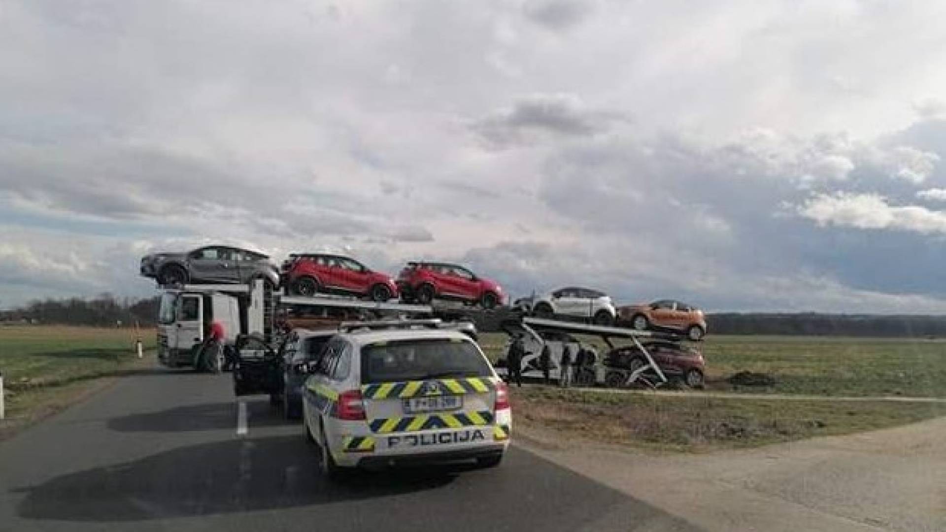 Bralec nam je posredoval fotografije tovornjaka, polnega avtomobilov, ki je po njegovih informacijah nasedel med obračanjem. Gre za tovornjak tujih registrskih številk.