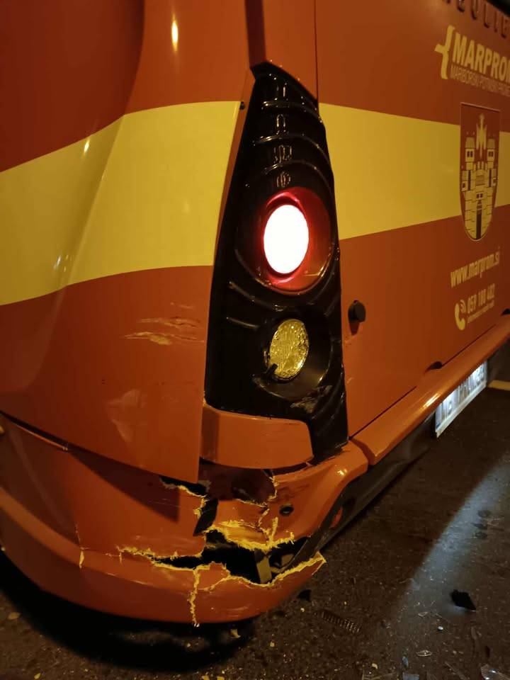 Zapisal je, da je avtobus stal pri rdeči luči, ko je vanj trčil voznik avtomobila Audi, temne barve.
