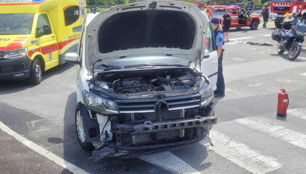 Trčenje avtomobila in motorista, eno osebo prepeljali v nadaljnjo oskrbo.