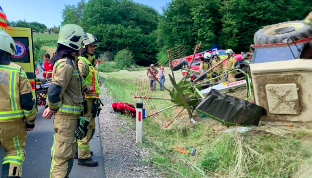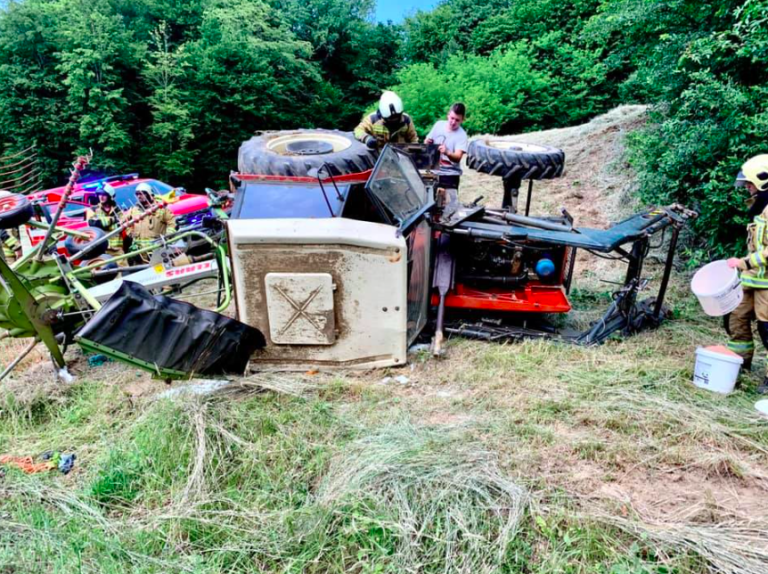 V Vidmu, v naselju Vareja, se je danes ob 15.21 pripetila delovna nesreča, pri kateri se je traktor prevrnil iz hriba na cesto.