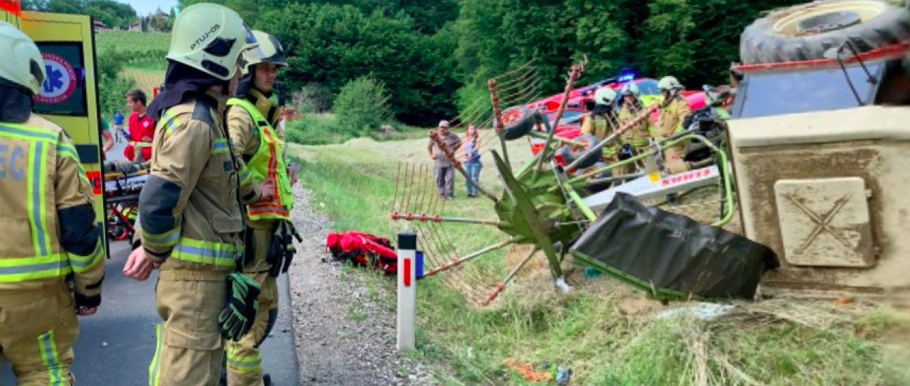 Gasilci prostovoljnih gasilskih društev Leskovec in Ptuj so protinaletno zavarovali kraj dogodka, iz kabine traktorja izvlekli poškodovanca in ga prenesli do reševalnega vozila Nujne medicinske pomoči Ptuj.