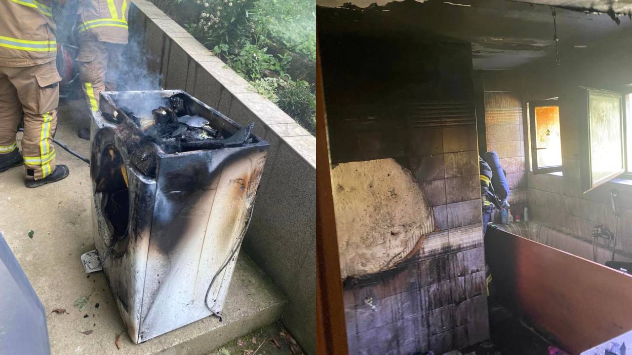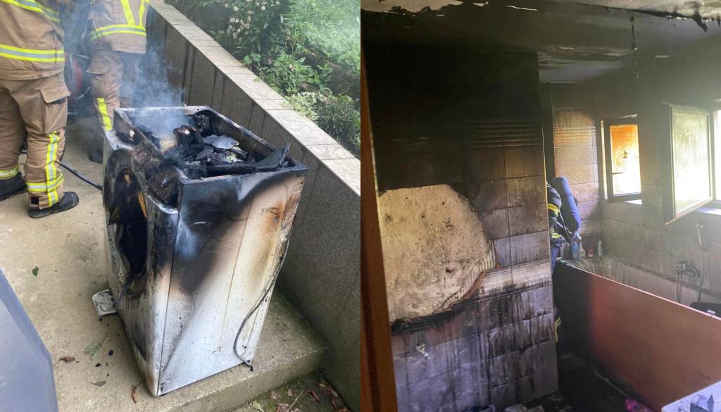 V kopalnici je zagorel pralni stroj.