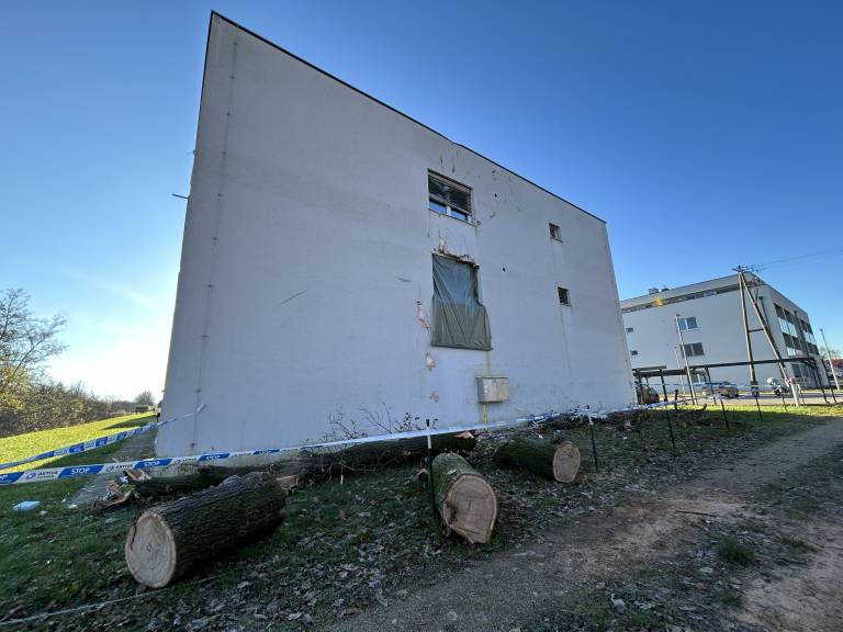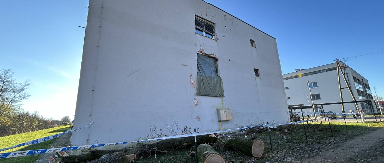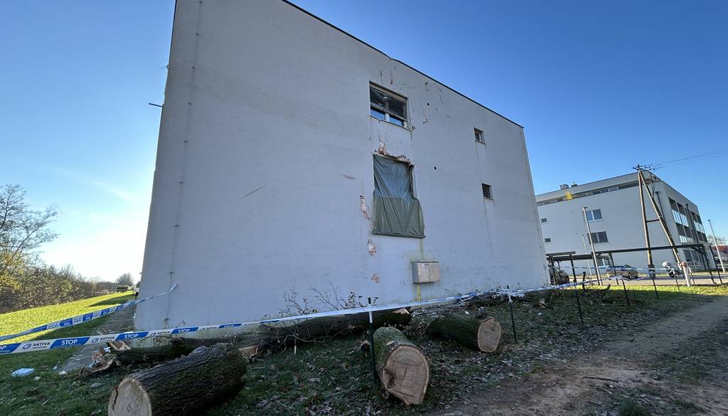 Drevo je prebilo okno in pristalo v kuhinji stanovanja, kjer živi mlada družina.