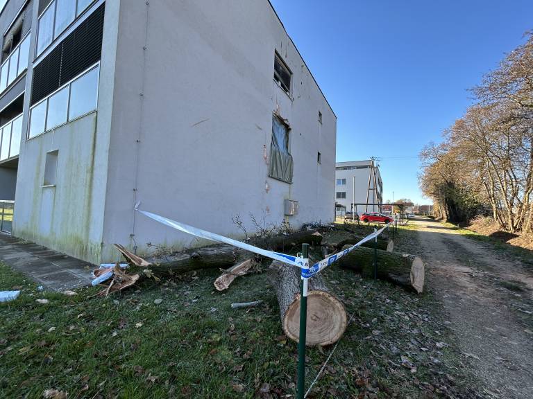 V sredo pozno popoldan je v Račah prišlo do nenavadnega dogodka, ko se je dotrajano drevo podrlo na večstanovanjski objekt.